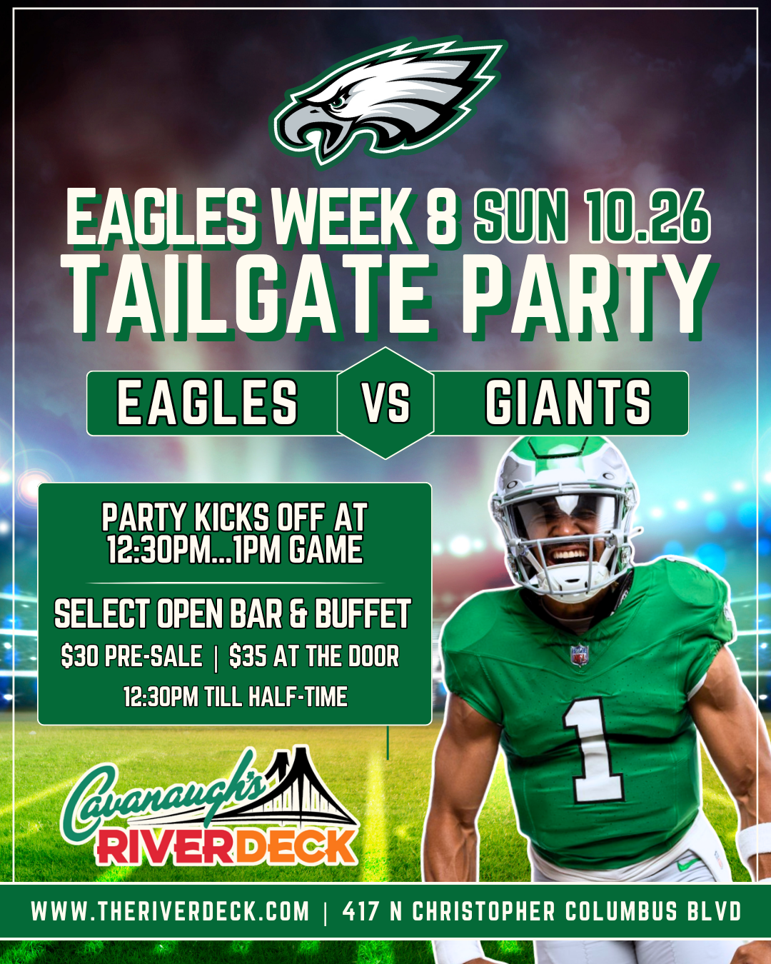 The party’s gonna be as HYPE as Hurts on game day…CRD is the spot for the ULTIMATE Eagles Watch Party! 🦅💚